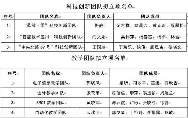 根据《星空体育·(中国)官方网站科技创新团队建设管理办法(试行)》(南机电院[2016]38号)、《南京机电职业学院教学团队建设与管理办法(试行)》(南机电院[2016]37号)的有关规定,经校内公开申报、资格审查和专家评审,确定星空体育·(中国)官方网站拟立项科技创新团队3个、教学团队4个,现予以公示,名单如下: