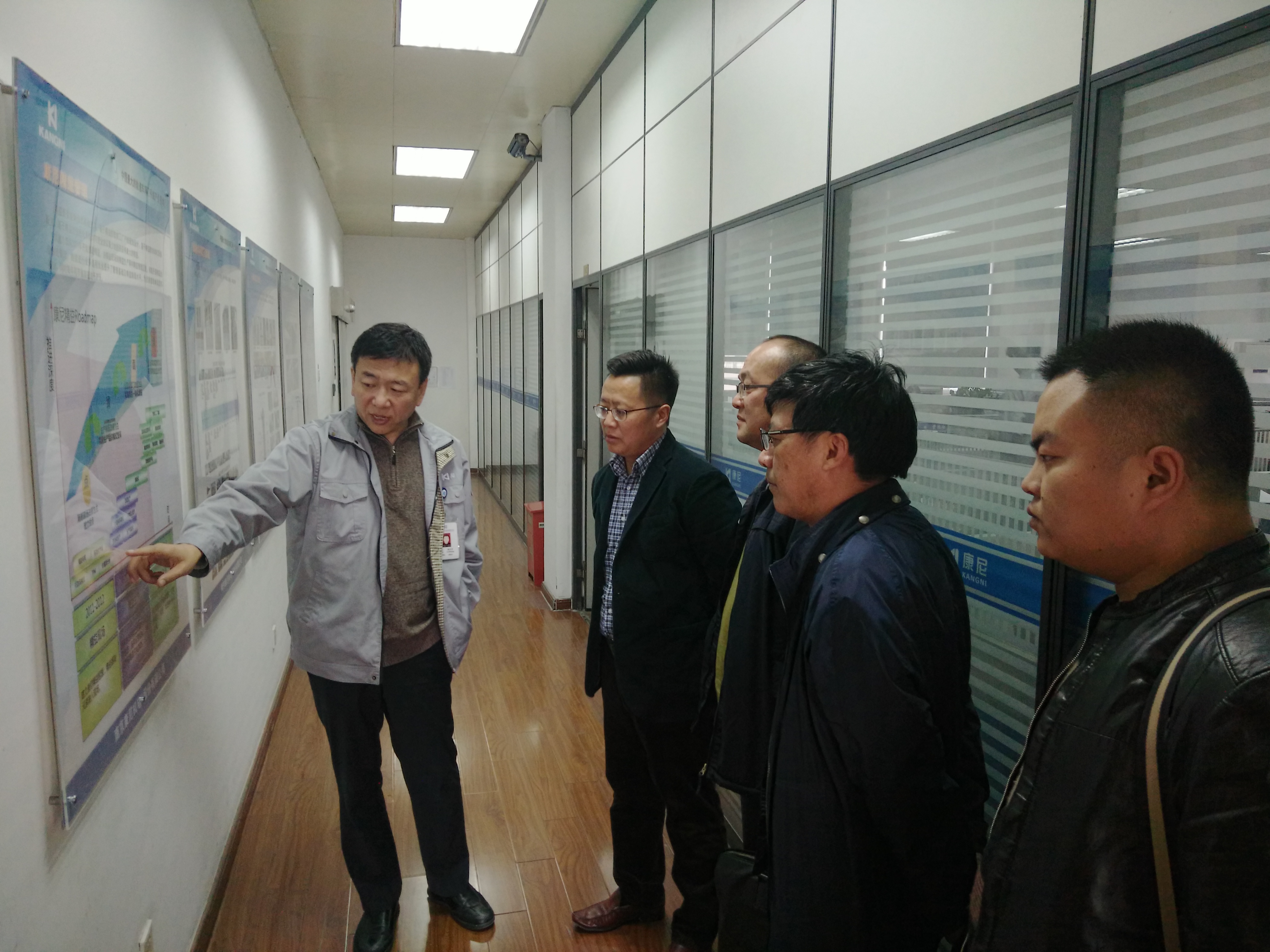 公司刘文平总经理亲自向周庆礼院长一行介绍了公司轨道车辆系统产业和精益生产管理情况,随后参观了公司轨道交通门、轨道交通装备配套产品自动化生产线,钣金、包边和焊接铣削机器人工作现场。