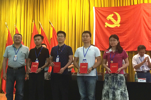 大会开始前,全体党员集体佩戴党员徽章、重温入党誓词。接下来党委副书记、常务副院长顾益明同志通报获得新工集团、机电产业集团优秀党员、党务工作者、先进基层党组织人员及单位。纪委书记、副院长陈赵同志宣读学院“七一”表彰决定,与会领导为受到表彰的先进基层党组织、优秀共产党员、党委工作者颁发了奖牌和证书。
