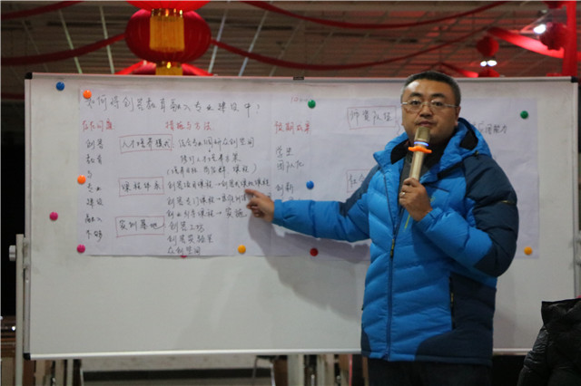 观察员刁爱军副院长重点对“创客式课改”议题讨论情况进行点评,他指出一是“创客教育”作为一种新的教育模式可以培养学生的批判性思维。二是我院创客教育人才培养方案明确定位“培养具有一定创新能力的技能型人才”,需要各专业负责人认真思考本专业的“具有一定的创新能力的人才标准是什么?”进一步完善人才培养质保体系中的“标准链”。三是创客教育实施要关注“五个融合和五个关系”。四是创客式课改课程是一种课程建设的一种模式,是课程改革的一种方式;创客项目是由学生提出来的,是学生自己要做的,更有利于提高学生的学习积极性。学院鼓励教师多开发围绕专业课程的创客项目课程,由简单到复杂的创客项目课程,根据学生不同学情重新构建课程,同时要重视“留白教育”,专业人才培养要留白,课程教学要留白,留空给学生填空,为学生提供发现问题,解决问题和训练创新思维的空间与环境。