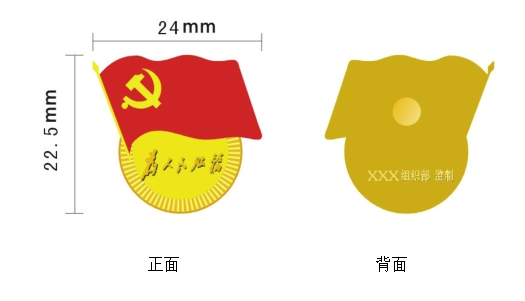 1、全体参会的党员同志按产业集团规定和“五亮”要求佩戴党员徽章,党员徽章由各支部配发。党员徽章正面上方为中国共产党党旗图案,下方为圆形图案,印有“为人民服务”字样;背面标注xx省(区、市)或xx部门(系统)党委组织部监制字样。徽章尺寸为24mm×22.5mm×2mm,材质为锌挂镀仿金。图示为: