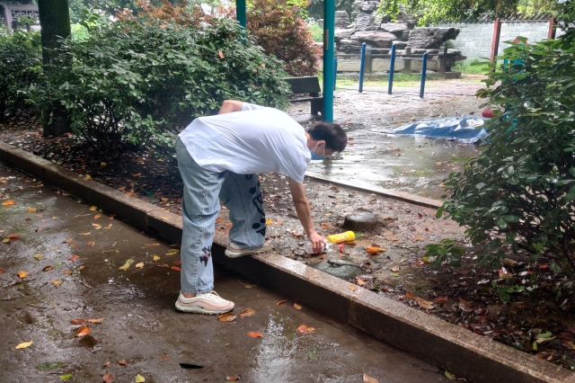 受疫情影响,本次活动主要是在线上进行,志愿者们在网上选择参与转发活动,在家的志愿者们根据自身情况选择帮助环卫工人打扫卫生、在自己家附近捡垃圾或垃圾分类等。这是一次值得纪念的活动,没有组团,没有奔赴很远的路程,完全是自己独自完成的活动,同时也在这个特别的日子,去做一些力作能及的事去爱护地球母亲。大家在活动中拍摄照片,分享自己在活动中的喜悦,发到网上宣传呼吁大家保护环境,更有拍摄视频的来记录这份宝贵的回忆。线下过程中,志愿者在活动中发现,有父母带着自己的孩子参与他们,过路行人也受到影响放慢脚步开始寻找绿丛中的“色块”。有的志愿者骑着脚踏车“追随”着环卫工人,年轻的活力,爽朗的笑声,就连躲在犄角旮旯里的垃圾也瑟瑟发抖,他们同环卫人坐在公路边分享生活里的趣事,为原本枯燥无味的工作增添几分色彩。或许就这就年轻与年迈的交织吧!