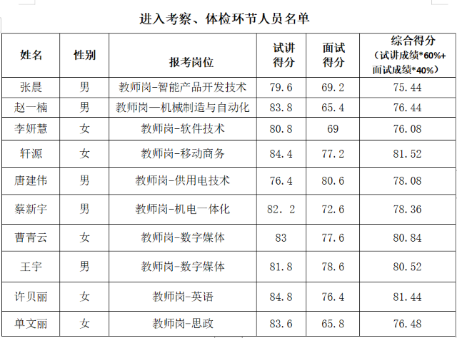 根据《星空体育·(中国)官方网站2020年教师、辅导员公开招聘笔试、试讲及面试考核公告》,经过资格审查和考核等环节,并经学院公开招聘领导小组和党委会研究,现将各招聘岗位进入考察、体检环节的人员名单予以公示,公示时间为五个工作日(2020年8月17日—2020年8月21日)。如有异议请在公示期内向我院人事处或纪委办公室反映。