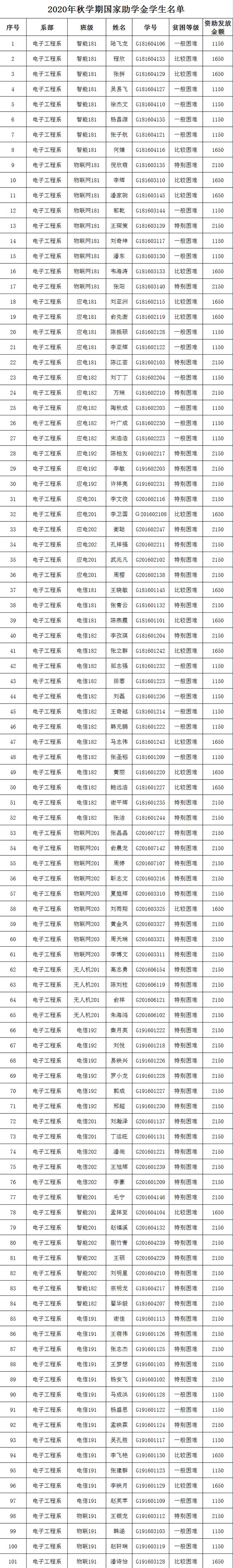 2020年星空体育·(中国)官方网站国家助学金名单公示