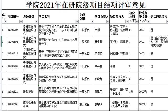 根据《关于2021年上半年院级在研科研项目结项的通知》、《星空体育·(中国)官方网站科研工作管理办法》机电学院[2012]19号、《星空体育·(中国)官方网站科研项目管理办法》机电学院[2012]20号文件精神,经科研及校企合作处审查,院专家组评审,批准我院2021年上半年学院在研科研项目26项通过结项鉴定。现将结项鉴定结果予以公示。