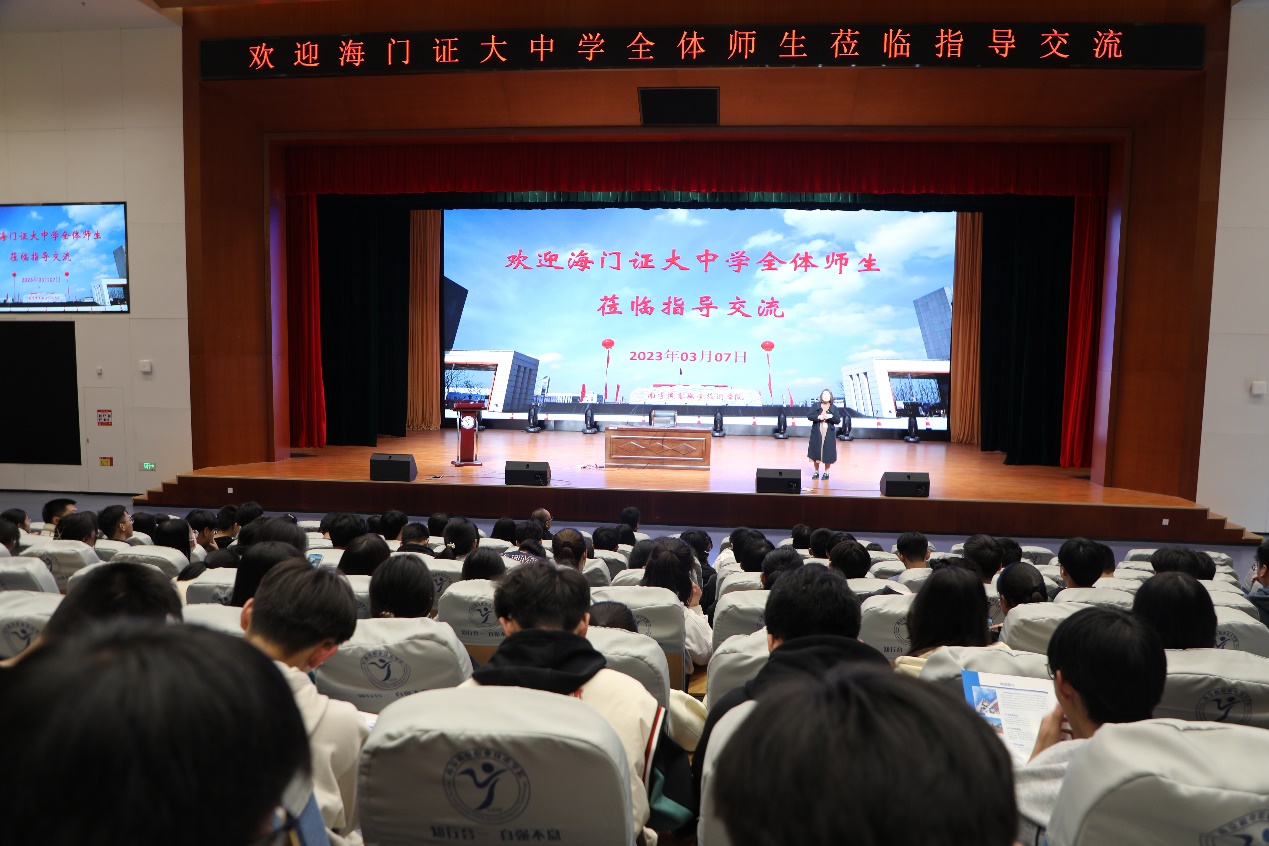 人文社科系主任曹安林为南通海门证大中学全体来访师生做了《齐心协力,共创“四新”机电》的主题讲座,深入全面的介绍了学院创客教育与职业教育相融合的人才培养新模式。围绕互联网+智能制造深度融合的产业生态链,阐述了学院培养符合智能制造产业发展需求的高素质技术技能人才的新理念。学工处招生办公室主任朱专恩为同学们详细解读2023年学校的提前招生相关政策,使同学们对我校今年报考相关政策有了进一步的熟识。