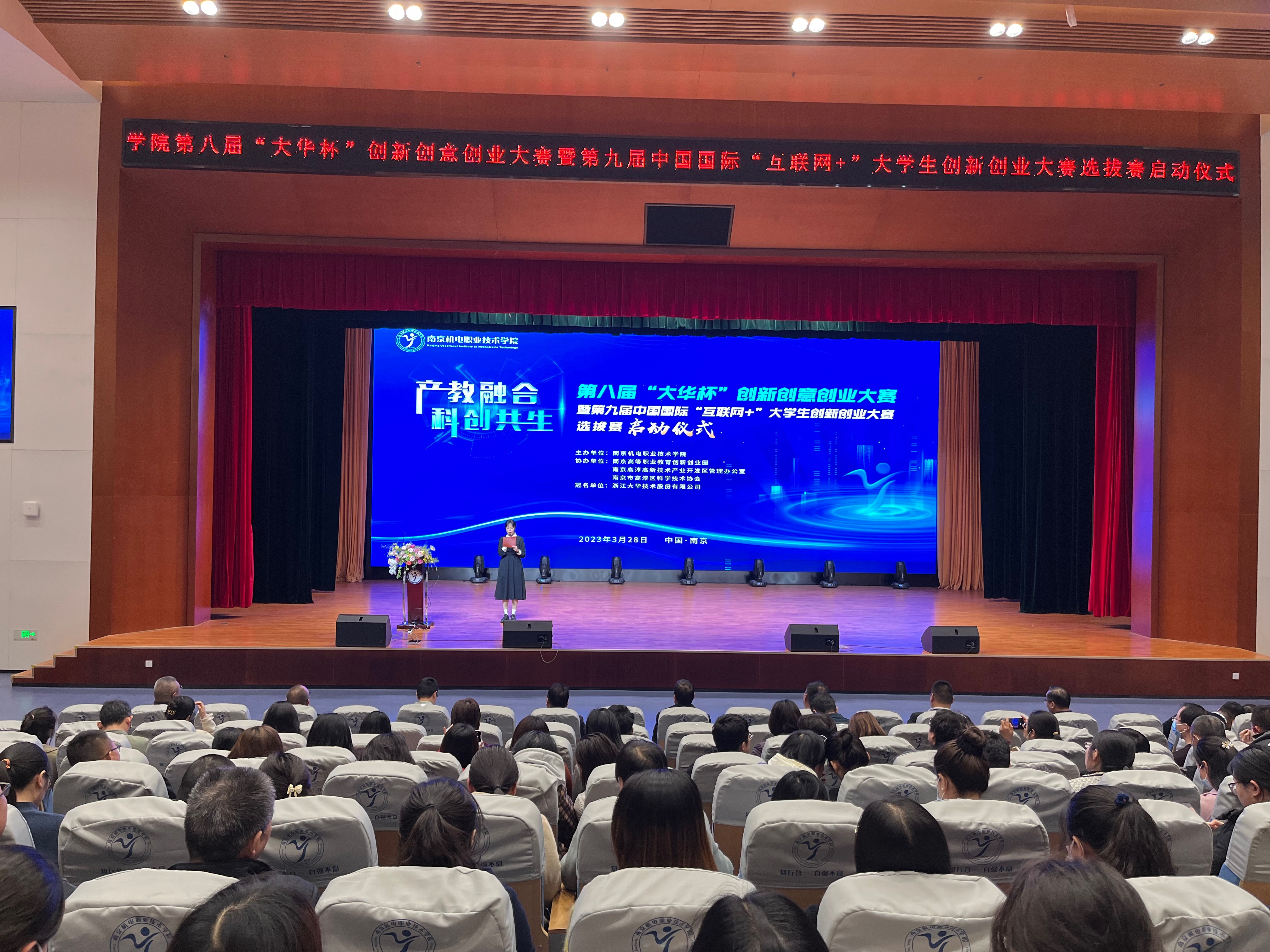 3月28日下午,学校第八届“大华杯”创新创意创业大赛暨第九届中国国际“互联网+”大学生创新创业大赛选拔赛启动仪式在青春剧场成功举办。南京高等职业教育创新创业园党工委委员、管委会副主任汪春荣,南京高淳高新技术产业开发区管理办公室分管负责人倪友谊,南京市高淳区科学技术协会副主席杨腊斌,浙江大华技术股份有限公司南京分公司总经理杨杰、南京办高溧组主任高国平,星空体育·(中国)官方网站党委委员、副院长郭朝辉,党委委员、副院长赵学洪,党委委员、副院长刁爱军,党委委员、副院长孔德丽,党委委员、工会主席姜振宇出席启动仪式。学校全体师生参与活动。