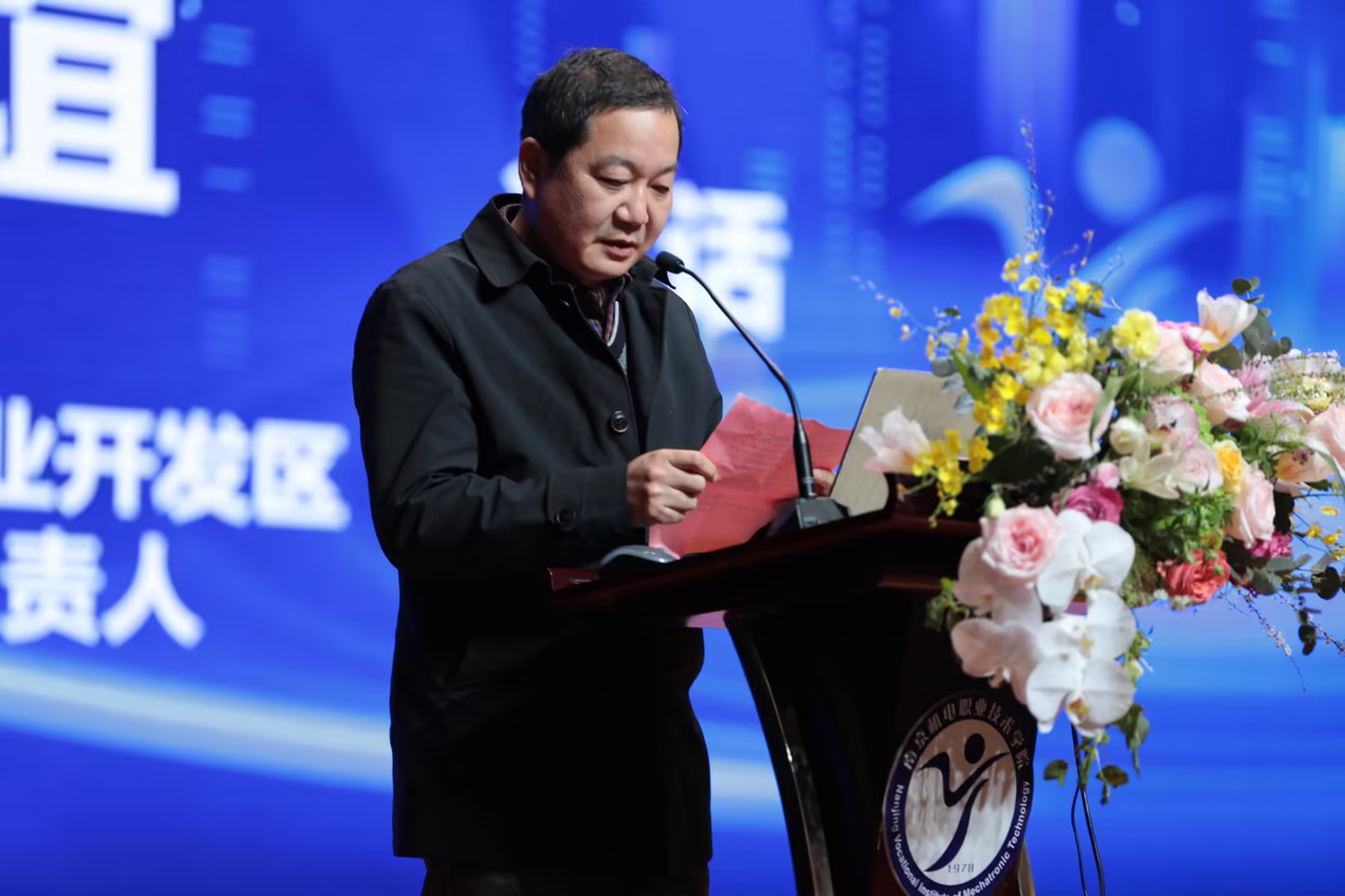 刁爱军在致辞中讲述了学校不断深化校企合作,推动产教融合的最新进展。他指出,产教融合是产业与教育的密切结合,是职业教育发展的新路径;科创共生是科学研究与创新创业的交融共生,是产业发展的新动能。本届大赛,我们汇聚“校、地、协会、企业”四方力量,共同搭建产教融合、科创共生的协同创新平台,共同打造校企混编创新团队,创造更多更好的大赛精品,促进创新创意创业转化为经济发展新动能。