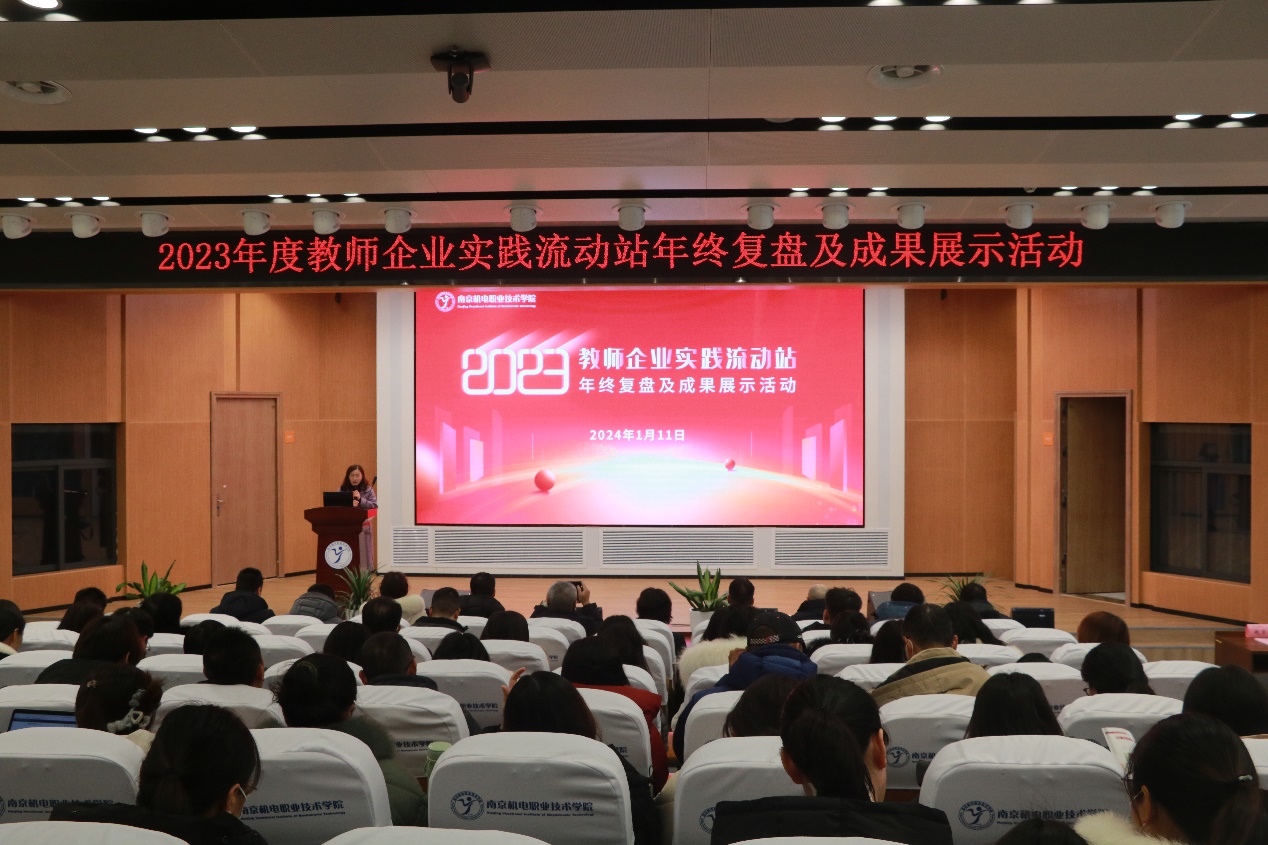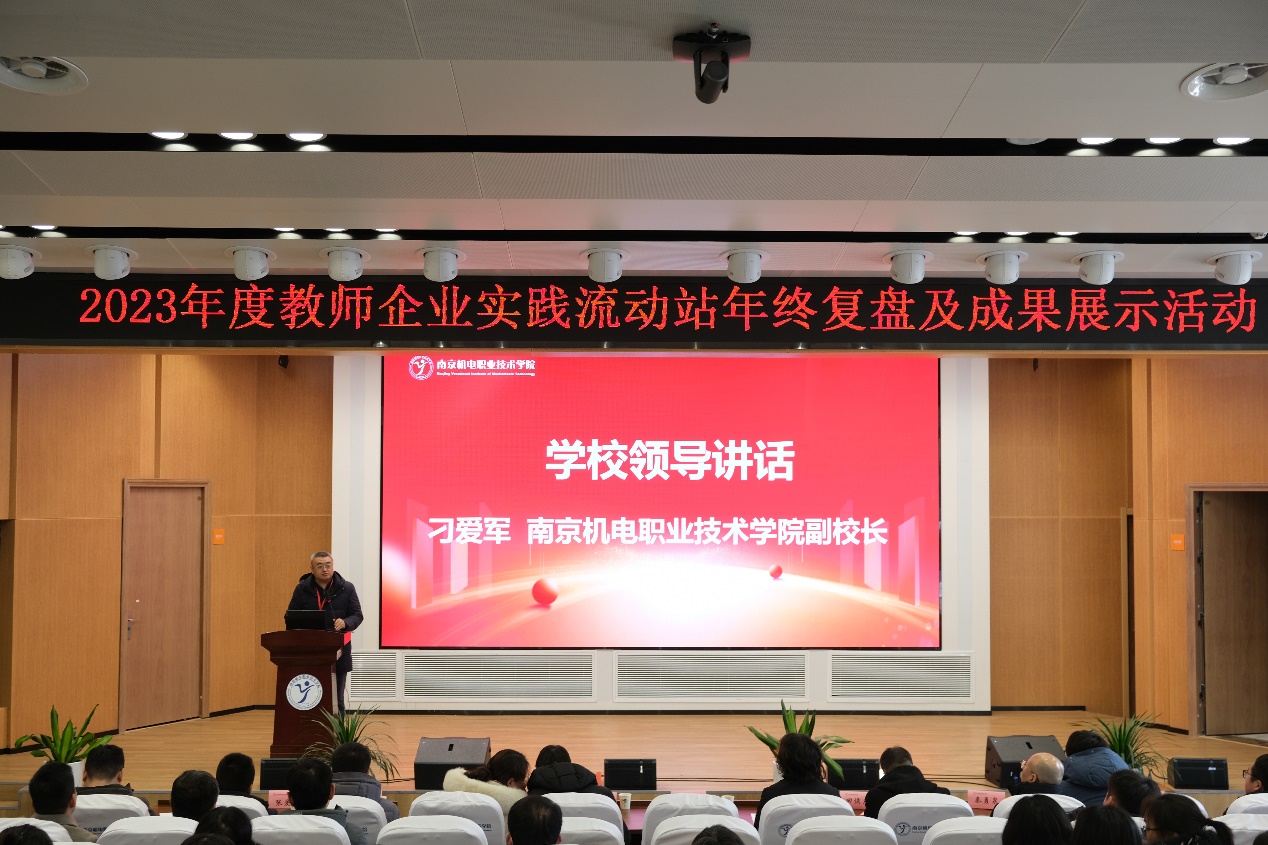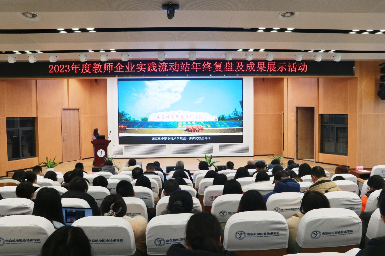 2024年1月11日,星空体育·(中国)官方网站成功举办2023年教师企业实践流动站年终复盘及成果展示活动。南京康尼电气技术有限公司总经理马涛,浙江大华技术股份有限公司文教卫总监方鸣子,南京易技未来动画制作有限公司董事长张恒,南京冠盛汽配有限公司运营总监田儒东,创维电器股份有限公司工业设计中心部长肖华,上海三菱电梯有限公司华东一区副教务长秦勇泉,南京奥派信息产业股份有限公司江苏区域总经理盛晓良,学校党委委员、副校长刁爱军,党委委员、副校长孔德丽等领导出席本次活动。7个教师企业实践流动站进站教师及企业导师团队、全体专业教师、高淳区科技局及工业和信息化局代表等近200人参加了此次活动。