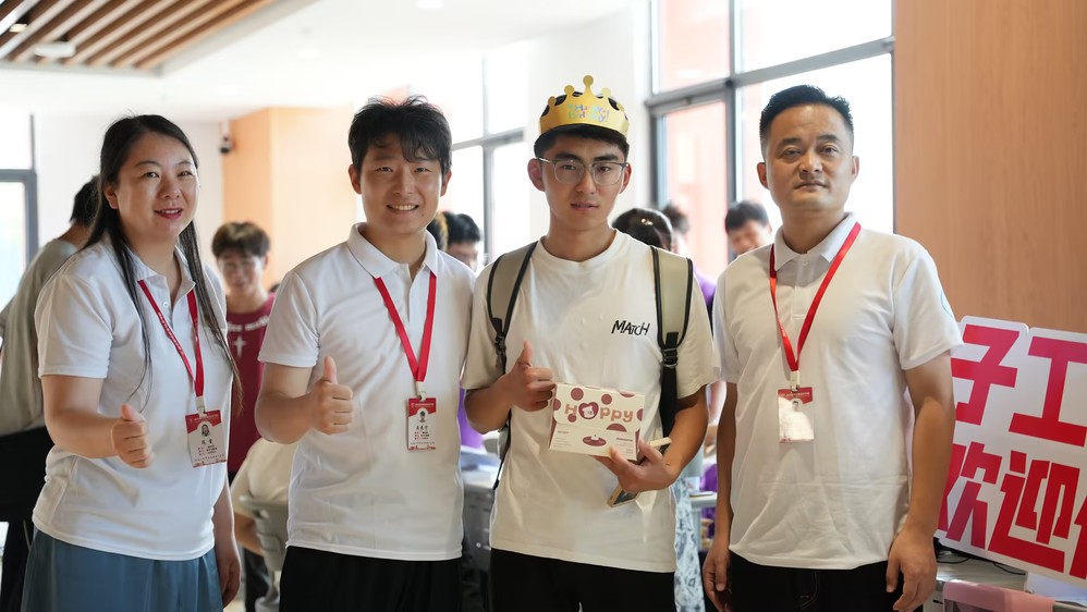 甜蜜蛋糕,温暖祝福。迎新期间,电子工程系的老师们惊喜地发现,在 9 月 8 日至 10 日这三天,新生中有六位同学将迎来他们的生日。因此,电子工程系在新生报到当天特别策划了暖心生日会。现场,师生们纷纷献上祝福,温馨的话语如暖流般流淌在每一个寿星的心间。预祝新同学在南机电快乐学习、学有所成,尽情享受丰富多彩的校园生活。