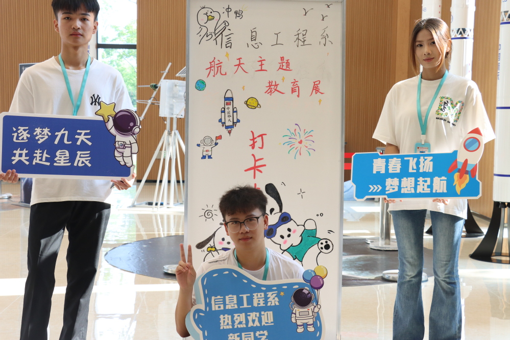 航天特色,机电有爱。信息工程系面向新生开展了趣味盎然的“机电印象” 校园地图打卡活动,鼓励新生们独立完成报到流程,迅速熟悉校园环境,更快地融入大学生活。报到现场更是热闹非凡,组织了 “精彩通三关” 活动,特别值得一提的是 “航天主题教育展” ,它以其丰富的内容和独特的展示形式吸引了众多新生和家长的目光。信息工程系主任王国珍介绍,此次举办的 “航天主题教育展” 一方面是为了激发新生们对航天领域的浓厚兴趣,让他们了解到航天科技的前沿动态和无限魅力。另一方面,也是希望借助航天主题,培养学生们的爱国情怀、科学精神和创新意识。辅导员老师们也在新生入学前为他们准备了特别的惊喜——“爱的抱抱” 和 “爱的阅读”。报到现场,老师们亲切地赠送新生们一个温暖的抱枕和一本富有意义的书籍,希望这些小小的礼物能让新生们感受到系部对他们的关爱与期望。信息工程系党支部书记胡枫表示,这些活动不仅是对新生的欢迎和鼓励,更是信息工程系传承和弘扬航天精神、培养创新人才的重要举措。