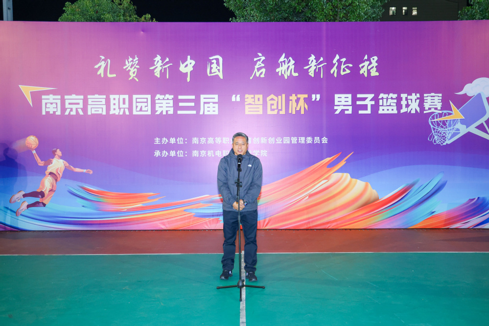 为庆祝新中国成立75周年,深入学习贯彻党的二十届三中全会精神,推动文化事业发展,强化校企地融合,加强园区“智创”党建联盟成员单位交流。10月23日,由南京高等职业教育创新创业园管理委员会主办、星空体育·(中国)官方网站承办的2024年南京高职园第三届“智创杯”男子篮球赛在我校顺利开幕。开幕式由党委委员、党委工作部副部长高水冕主持。