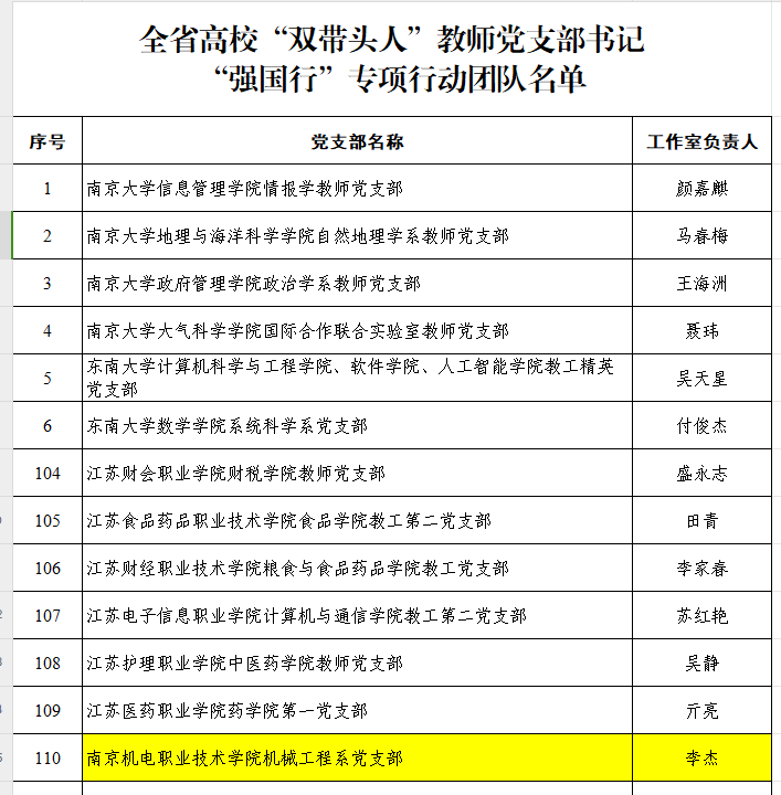 喜报:机械系党支部入选全省高校“双带头人”教师党支部书记“强国行”专项行动团队