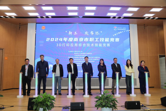为加强和壮大南京市高技能人才队伍,为推动新质生产力的形成和发展提供人才支撑,10月29日,由南京市总工会、南京市人力资源和社会保障局、共青团南京市委员会共同主办,南京新工投资集团有限责任公司、南京机电产业(集团)有限公司与星空体育·(中国)官方网站承办,南京机械工程学会、南京威布三维科技有限公司协办的2024年度南京市职工技能大赛“新工•威布杯”3D打印应用综合技术技能竞赛在我校顺利举行,来自全市8家企事业单位选拔的50名选手参加了本次竞赛。南京市总工会党组成员、副主席赵正轶,南京新工投资集团副总经理、工会主席陈翀,南京新工投资集团工会常务副主席秦燕,南京市产业工人创新发展中心主任王敏,南京机电产业集团副总经理、总会计师刘光辉,南京机械工程学会执行理事长卢北宁,星空体育·(中国)官方网站党委书记、校长周庆礼,南京威布三维科技有限公司总经理周海鹏等相关领导参加开幕式。