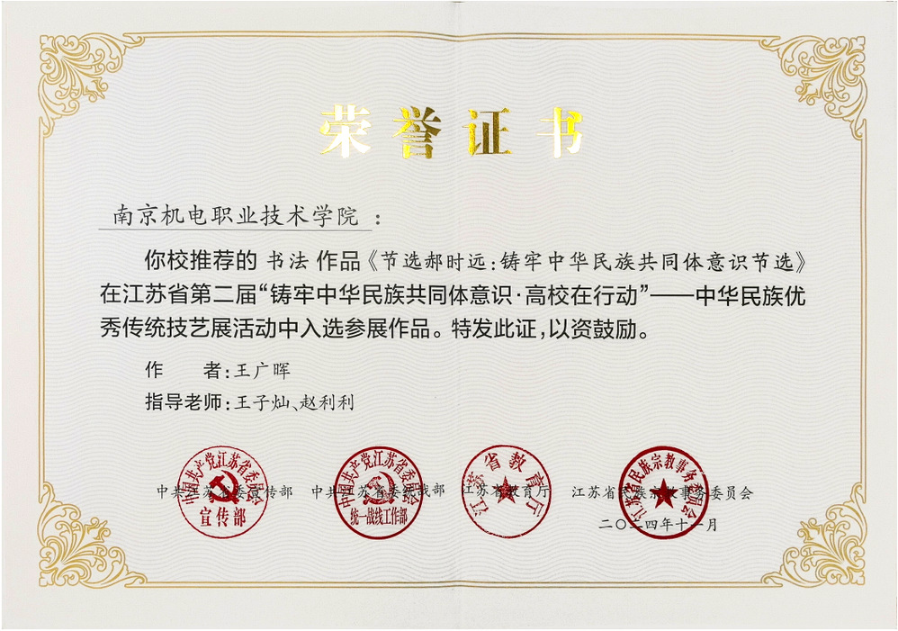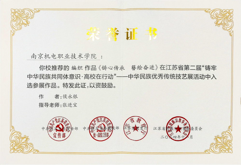 我校学生作品入选江苏省第二届“铸牢中华民族共同体意识·高校在行动”——中华民族优秀传统技艺展参展作品
