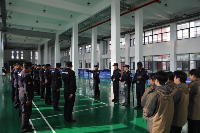 保卫处积极开展打造高质量平安校园系列活动,开展校园防暴应急演练,构筑安全防线。2024 年11月21日,学校联合古柏派出所在慎行楼羽毛球馆组织开展了一场紧张有序且极具实战意义的防暴演练,学校安保人员和宿舍管理员参加演练,机关二支部教职工观摩了演练。