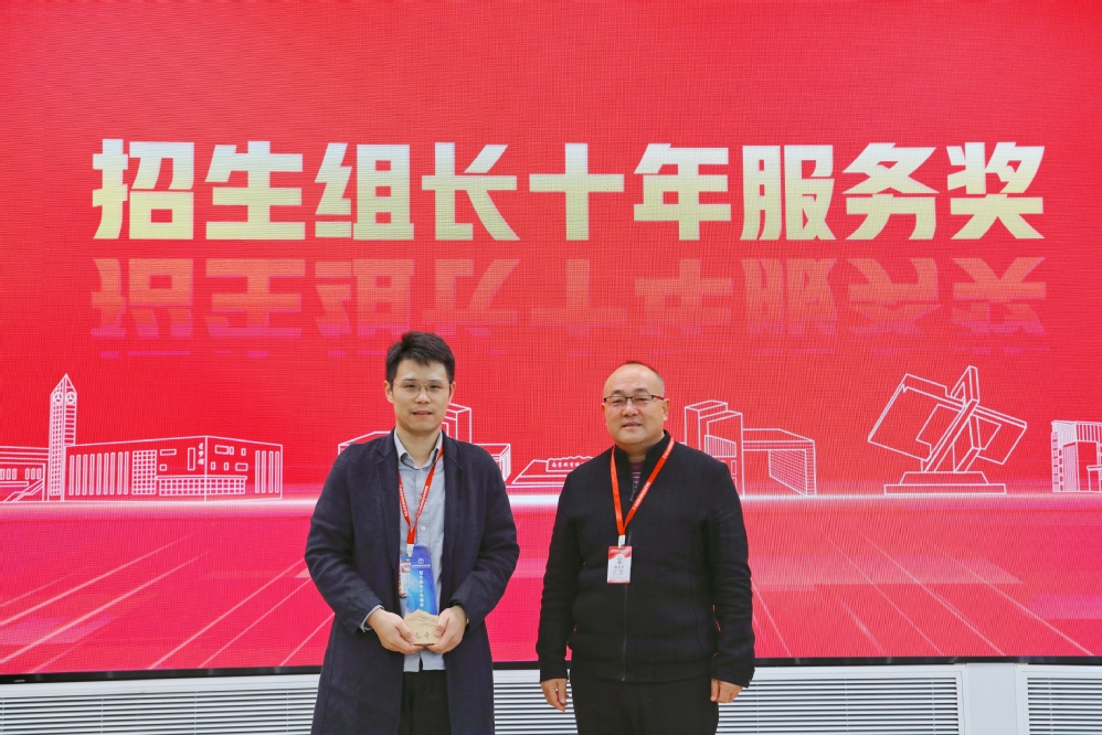 党委副书记、副校长赵学洪为获得“招生组长十年服务”的机械工程系主任毛奇颁奖。