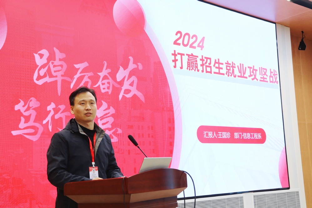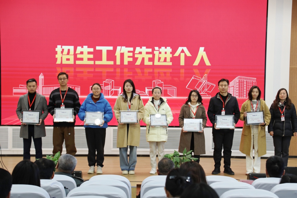委副书记、副校长赵学洪宣读《关于表彰2024招生工作先进集体和先进个人的决定》和《关于表彰2023度就业工作先进集体和先进个人的决定的文件他表示,希望受表彰的先进集体和先进个人,要戒骄戒躁,再接再厉,为学校的招生就业工作再立新功,希望与会各位老师以更加饱满的工作热情,为学校高质量发展持续贡献智慧和力量。