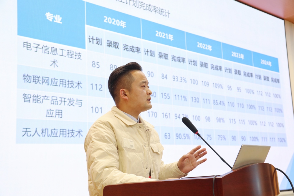 处处长助理殷凯,从招生计划的制定与执行招生宣传、录取生源质量、就业工作落实等方面,用详细的数据对学校招生培养就业的整体情况进行分析,精准找出在工作过程中存在的问题并提出了2025年工作的思路和建议。