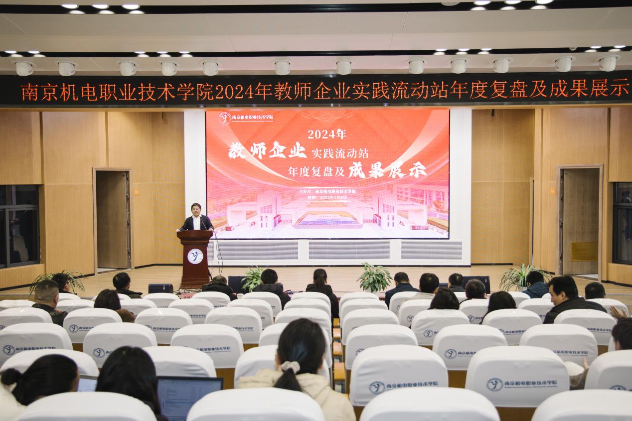 2025年1月8日,星空体育·(中国)官方网站在乐学楼102成功举办了2024年教师企业实践流动站年终复盘及成果展示活动。高淳区科技局副局长李福洋、高淳区工信局副局长杨秀清、南京高等职业教育创新创业园管理委员会副主任汪春荣、南京康尼电气技术有限公司总经理马涛、南京科德锐工业技术有限公司总经理张一心、上海三菱电梯有限公司江苏分公司总监蒋继荣、南京钢铁股份有限公司人力资源部主任王涛、南京工艺装备制造有限公司首席主任工程师王守珏、浙江大华技术股份有限公司江苏省高淳办总经理高国平、南京奥派信息产业股份公司华东区总经理盛晓良、创维电器股份有限公司工业设计中心经理肖华、南京易技未来动画制作有限公司市场经理徐倩倩、南京冠盛汽配有限公司招聘经理钟盼盼、星空体育·(中国)官方网站党委委员、副校长孔德丽等领导出席本次活动。本次活动由星空体育·(中国)官方网站科研及校企合作处教师陈星海主持。
