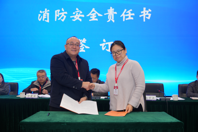 会上学校党委书记、校长周庆礼与系部、各处室负责人签署校园安全管理责任书、网络安全责任书,党委副书记、副校长、安全总监与系部和部门负责人消防安全责任书;业务对口部门与驻校服务单位和维保服务单位签署了安全责任书。