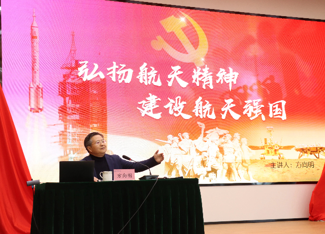 方向明首先带领大家回顾了人类航天事业的起源、发展历程以及关键里程碑事件,展现了航天事业从无到有、从小到大的壮丽图景。方向明详细介绍了新时代中国航天事业取得的辉煌成就,如载人航天、月球探测、北斗系统及天宫空间站等,彰显了我国航天事业的蓬勃发展和国际地位的提升。他强调,航天事业的高风险、高投入、国际化合作和技术创新驱动特点,及其对国家安全与国际地位的重要性。通过讲述航天先驱与当代杰出人物的故事,方向明弘扬了勇于探索、挑战极限、无私奉献和团队合作的航天精神,他鼓励大家在新时代背景下继续发扬航天精神,推动航天事业高质量发展,激励师生勇于追梦、担当责任,为航天事业贡献力量。