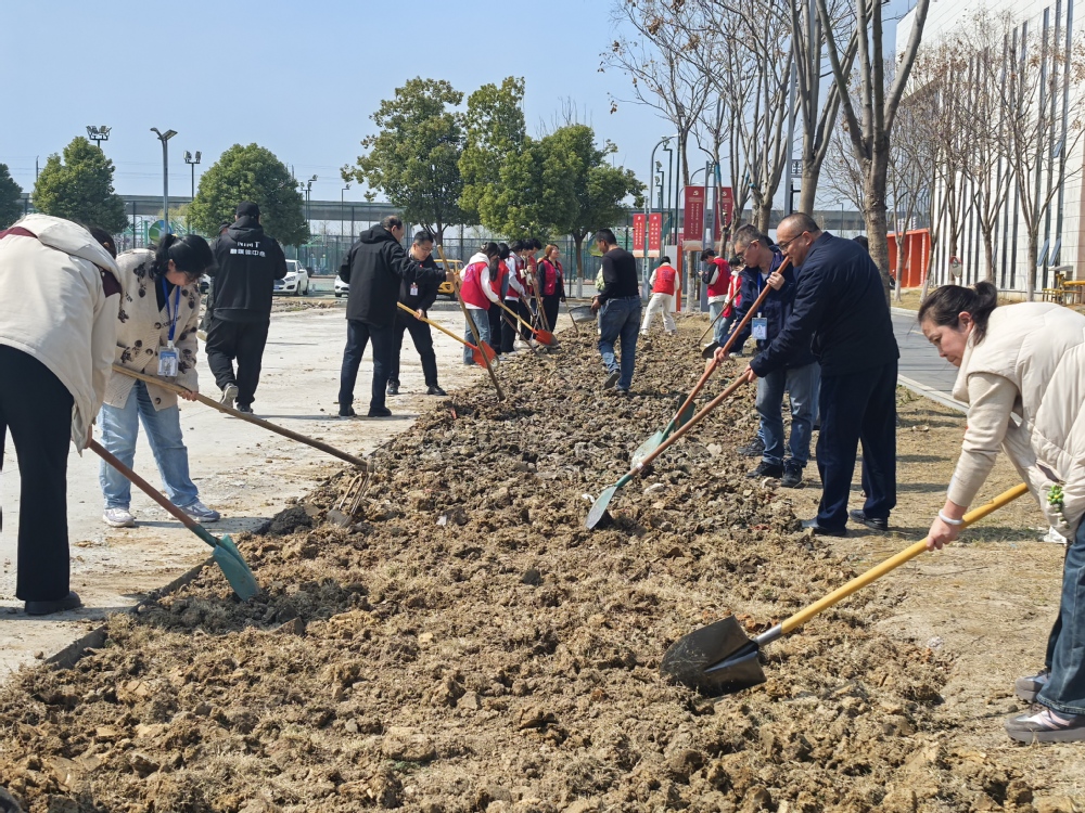 播种绿色,收获成长。311日,机关二支部在校园开展了“党团同心增新绿,工群合力添新颜”植树节主题党日活动,在校园内外播撒绿色希望。当日下午,党委副书记、副校长赵学洪与机关全体教职工、学生团员代表齐聚一楼食堂门前,开启了这场充满意义的绿色之行。活动现场,大家分工协作,热情高涨。在开垦播种区域,师生们齐心协力,翻土、播种、浇水,精心种下格桑花与二月兰的种子,期待它们在不久的将来绽放出五彩斑斓的花朵,为校园增添一抹绚丽色彩;在移栽种植区,广玉兰、白玉兰树苗在师生们的悉心栽培下,稳稳扎根于校园土地,承载着大家对绿色校园的美好期许,在春风中展现出蓬勃生机。