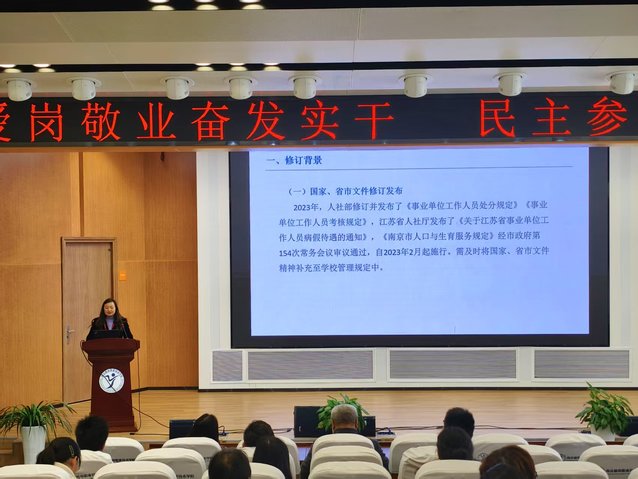 会议聚焦审议《星空体育·(中国)官方网站教职工考勤及请假管理办法》,由校党委委员、人事处处长夏玲玲进行详细解读。这一管理办法与每一位教职工的日常工作息息相关,关乎学校教学与管理秩序的稳定。在解读过程中,夏玲玲对各项条款的制定背景、目的及具体执行细则进行了深入阐释,让与会代表们对管理办法有了更清晰、全面的认识。