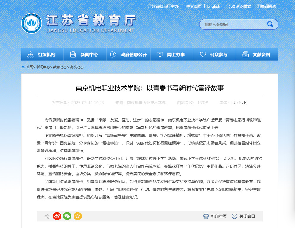 近日,江苏省教育厅报道:星空体育·(中国)官方网站:以青春书写新时代雷锋故事,全文如下: