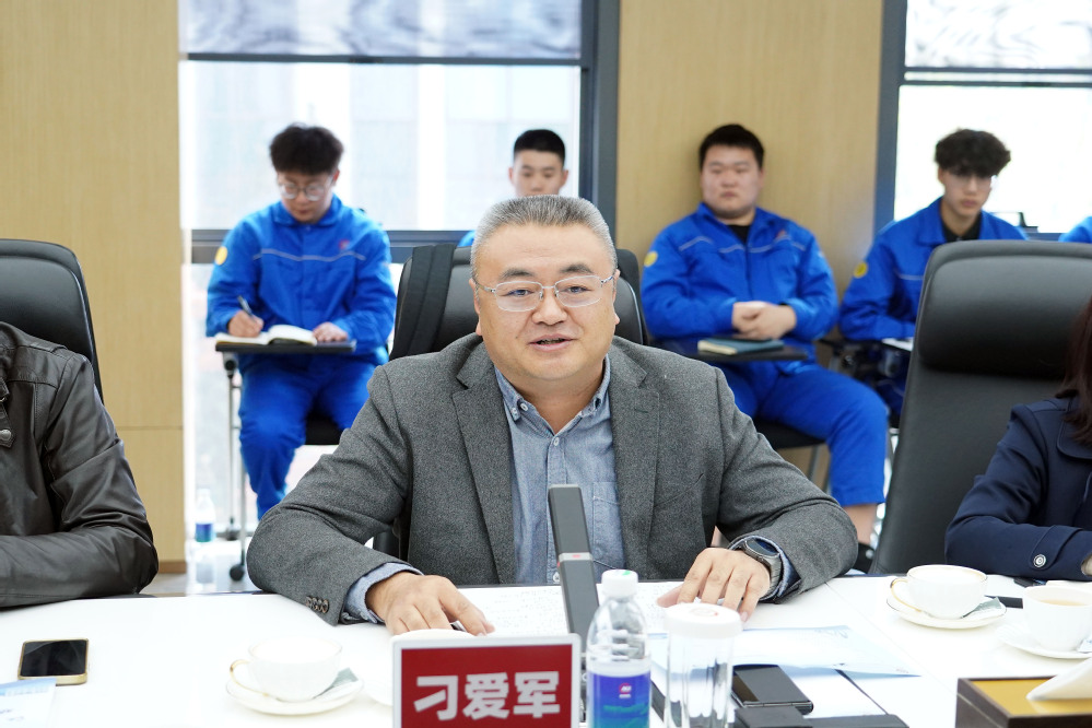 刁爱军对在场的二期21名学员提出了殷切希望,鼓励他们以第一期的学员为榜样,努力做的更好;同时充分肯定现场工程师项目开展过程,得出了有益于机电学子的发展、有益于南钢企业人才储备、有益于学院特色发展的三个有益于;给出了围绕现场工程师项目培养的三个期待:第一期待学员回报师长们的关爱、回报南钢领导的厚爱和期待,第二期待学校企业流动站教师共同撰写手册、教材,进行课程体系架构等,能反哺校内人才培养,第三期待校企双方产生更多的成果,如成功申报产业教授,计划邀请全国劳模进校园,将三全育人,五育并举劳模精神融入人才培养全过程。