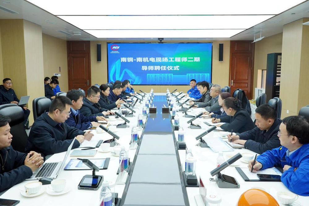 产教融合是教育与产业协同发展的纽带,南机电和南钢集团校企深度合作,在圆满进行现场工程师项目一期联合培养的基础上,于2025年4月2日在南钢集团智慧中心B座209举办现场工程师项目二期导师聘用仪式,旨在培养“企业满意、社会满意、学生满意、家长满意”的创新性技术技能人才。学校党委委员、副校长刁爱军,机械工程系主任毛奇,校企合作处处长李木香,机械制造及自动化专业负责人桑晶,教师企业实践流动站教师代表李路娜,南京钢铁股份有限公司党委副书记、副总裁王芳,南钢组织部部长郑斌,南钢人力资源部培训开发室主任仲崇波,人力资源部副主任王涛,企业导师代表,二期现场工程师学员代表和产业教授张红军等参加了此次活动,江苏教育电视台对本次活动进行跟踪报道。