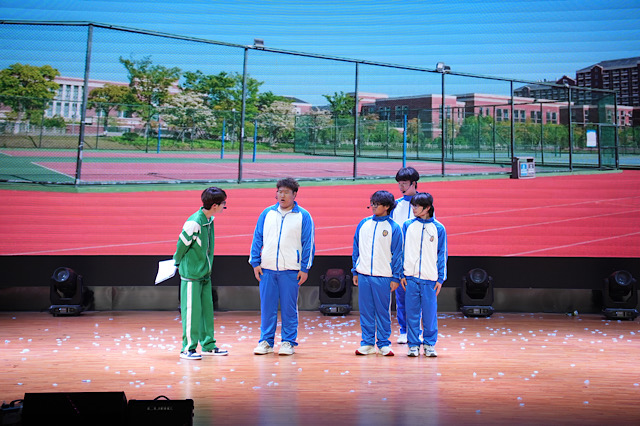 当夜幕悄然笼罩校园,内场晚会在众人的期待中迈着欢快的步伐登场。舞台剧、小品以跌宕起伏的剧情和演员们精湛的表演,赢得雷鸣般的掌声;舞蹈节目则像灵动的蝴蝶,用曼妙舞姿舞出青春的活力与激情;乐队和歌手们的深情演绎,让观众们无不沉醉其中。晚会中穿插的抽奖游戏环节,更是直接点燃现场的氛围,让现场欢呼声响彻礼堂。突如其来的特别节目为学生们展示了教师们的“土味”告白,孙老师的登场演唱再次将现场气氛推向高潮,让大家从另一个角度发现了这群辛勤工作的园丁俏皮活泼的一面。晚会的最后,随着童真的音乐,所有的演员和工作人员涌上舞台,在欢快活泼的音乐中为这次晚会画上圆满的句号。非遗元素与现代艺术巧妙融合,碰撞出别样的火花,为观众带来一场如梦如幻的视听享受,将晚会氛围一次次推向高潮。