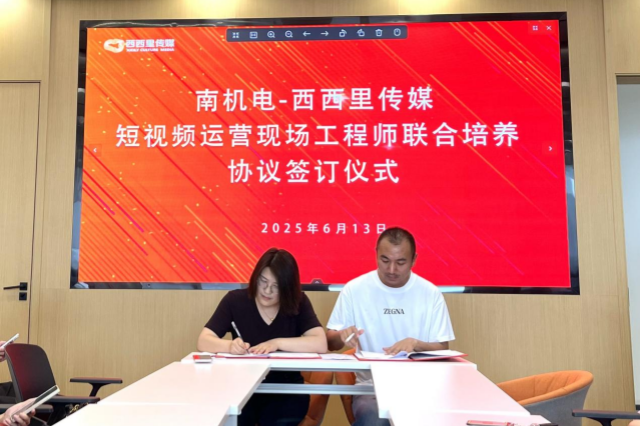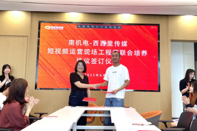 为深入贯彻落实党的二十大和二十届二中、三中全会精神,深化产教融合,助力学生职业发展,2025年6月13日,南机电人文社科系主任曹安林带领师生团队赴南京西西里文化传媒有限公司进行参观交流,并成功签订“短视频运营现场工程师”联合培养协议。