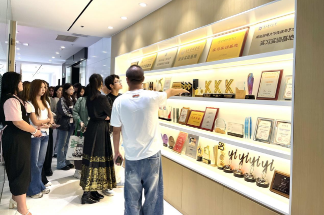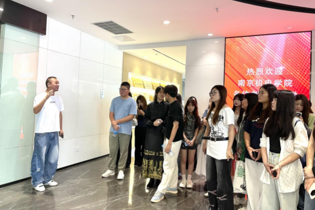 在参观环节,师生们深入了解了这家知名MCN机构的运营模式。公司展厅内陈列的“南京市十佳广告经营单位”、“中国内容创业公司百强以及中国一级广告企业”等荣誉奖牌都彰显了其行业地位。在参观学习过程中,师生们亲眼目睹了多个主题摄影棚同步运作的场景。据副总经理邢夏飞介绍,公司目前已为超过 5000 家品牌提供服务,其拥有的红人资源在全网的粉丝总量更是突破了2 亿。这些数据让同学们对该行业的规模有了更加直观清晰的认识。