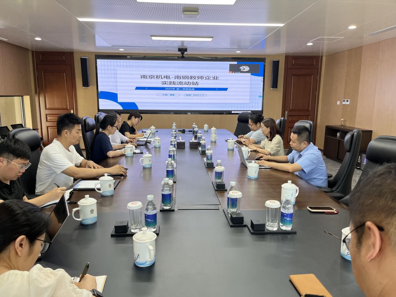 2025年7月11日上午,南机电-南钢、南机电-创维电器、南机电-工艺装备党建共建、南机电-冠盛汽配等四个机械工程系教师企业实践流动站进站教师与企业导师齐聚南京钢铁股份有限公司,联合举行教师企业实践流动站第二季度复盘交流会。南京钢铁股份有限公司人力资源部副主任王涛,学校科研及校企合作处处长李木香,教务处处长陈云霞等领导出席会议。四支教师企业实践流动站团队回顾了第二季度流动站建设及实践任务进站情况,并为第三季度流动站工作擘画蓝图。
