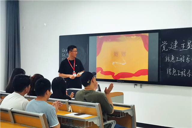 百年波澜征程,忆往昔峥嵘岁月;喜迎百岁华诞,展未来任重道远。党是不灭的明灯,指引我们航程。为庆祝中国共产党成立100周年,促进同学们学党史、知党情,按照系党支部要求,信息工程系团总支开展了“追忆百年奋斗历程”党建主题班会,为党的生日献上祝福。信息工程系党支部书记胡枫受邀参加了此次主题班会。