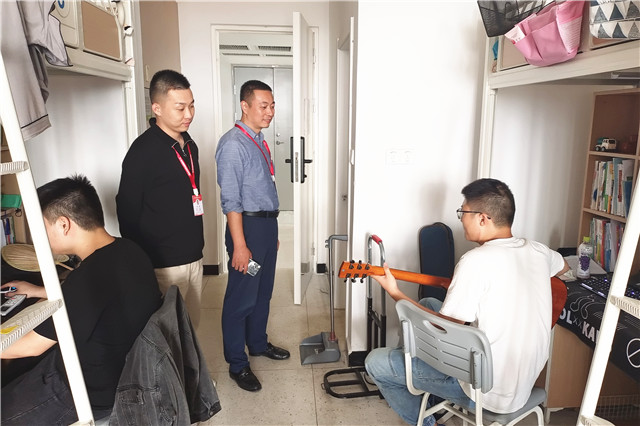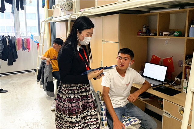 此次宿舍走访活动涉及润泽苑、静思苑、思齐苑三栋楼,老师们三到四人为一组进行调研,全体同志佩戴工作牌,党员同志佩戴党员徽章。旨在深入宿舍调研学生返校后生活、学习等情况有针对性的了解学生网课、对于学院疫情防控要求是否了解等情况。此次走访活动在学生中反响热烈,同学们深感家的温暖,表示在即将开启的新学期中,要脚踏实地,努力奔赴星辰大海。