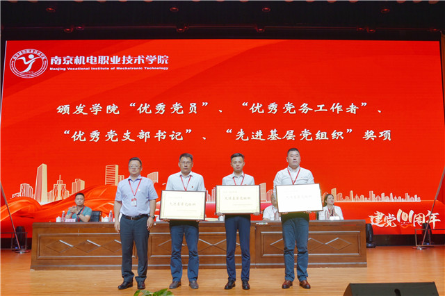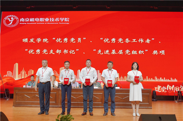 党委委员、副院长郭朝辉同志宣读获得2022年度机电集团“优秀党员”、“优秀党务工作者”、“先进基层党组织”等荣誉的获奖人员及单位。党委委员、副院长刁爱军同志宣读《2021-2022学年先进基层党组织、优秀共产党员、优秀党务工作者》的表彰决定。党委领导为获得学校“优秀党员”、“优秀党务工作者”、“优秀党支部书记”、“先进基层党组织”颁奖。
