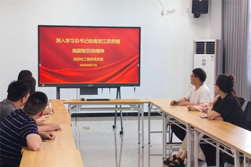 下一步,自动化工程系将不断深入学习宣传贯彻习近平总书记重要讲话精神,坚定不移跟党走,关注国家发展和进步,引导全系党员教职工积极投身到科技、教育等各个领域工作中,不忘初心、牢记使命,为国家的繁荣富强贡献智慧和才华。