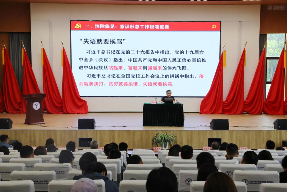 为深入学习贯彻习近平新时代中国特色社会主义思想,贯彻落实党的二十大、二十届二中和三中全会精神,进一步提升学校党员干部的政治素养和核心能力,为学校高质量发展注入强大动力,4月10日下午,我校在乐学楼101成功举办第二期党员干部能力提升培训。本次培训以“牢牢掌握意识形态话语权和领导权”为主题,全体党委委员、学校中层及以上领导干部、全体党员及后备人才库成员共计200余人参加,由党委委员、党委工作部副部长高水冕主持。