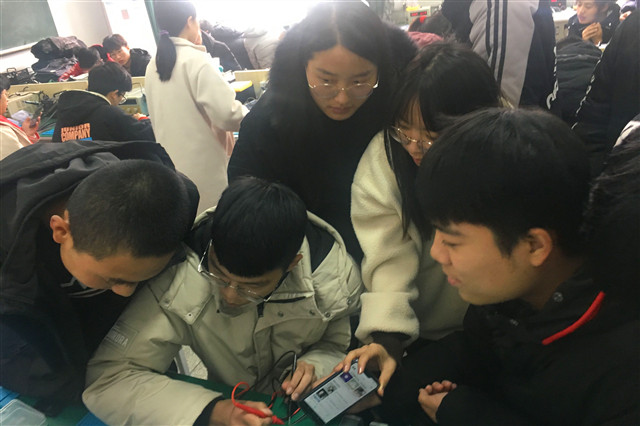 在专业课上,权老师带领同学们做听筒测试,学习拆装手机。其中有一个测听筒的环节,因为是圆型听筒,而且又很小,用数字电表很难检测。老师并没有直接教同学们怎么做而是一步步的引导他们,在老师的引导下,汪盛涛和团队成员一起想办法最后成功测试了听筒。通过这次实践,汪盛涛明白了老师授人以鱼不如授人以渔的良苦用心,也很感谢老师让他们自己通过实践得出真知。