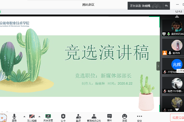 2020年7月2日17: 30,我系心理气象站学年工作总结会议暨换届选举在腾讯会议上举行。电子系心理气象站站长杨瑞老师,副站长王缘同学以及其他部长和全体干事参加了此次会议。