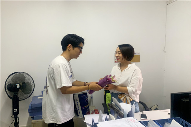 9月10日上午,电子工程系团总支、学生会和心理气象站的同学们将包装精美的花束,送到了教师办公室,老师们在“老师,您辛苦了!”、“祝老师节日快乐!”等一声声真挚的问候中,接过一枝枝鲜艳的花朵,他们的脸上写满了幸福与感动。由于疫情原因,很多同学还没有返校,因此他们用线上祝福的方式,通过自制视频给老师们送上祝福,虽然每幅画面的时间不长,但是同学们发自内心的祝福让老师们甜透心田。