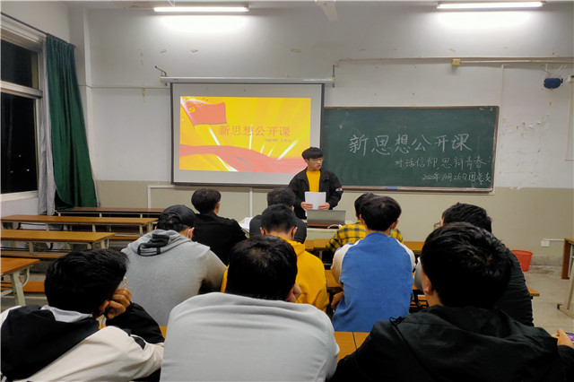 10月26日晚上18:00,智能192班与团总支在知行楼203召开了主题为《对话信仰、思辨青春》的新思想公开课,参加本次公开课有团总支副书记王诗尚,团总支各部长及智能192班全体同学。