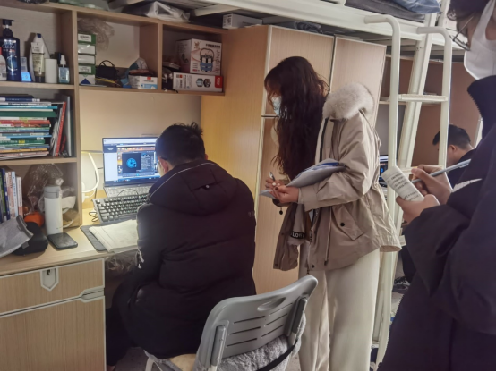 心理气象站指导老师刘依林前往电子工程系男生宿舍对同学们网课期间的心理状况进行了解查访,同学们对宿舍上网课学习氛围如何等问题一一做了答复,刘依林老师和走访的干事们在笔记本上细细记录下走访过程中学生反馈的一系列问题,并在活动结束后进行汇总,以便日后处理预防。