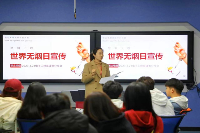 为进一步加强校园禁烟宣传力度,强化学生对于禁烟意识和对吸烟危害的认知,为我校师生打造无烟、清洁、健康的学习和生活环境,切实推进文明校园建设。3月21日,电子工程系在思学楼召开学生骨干禁烟宣传专题会议。电子工程系党支部副书记唐钰峤主持会议,系全体学生骨干参会。