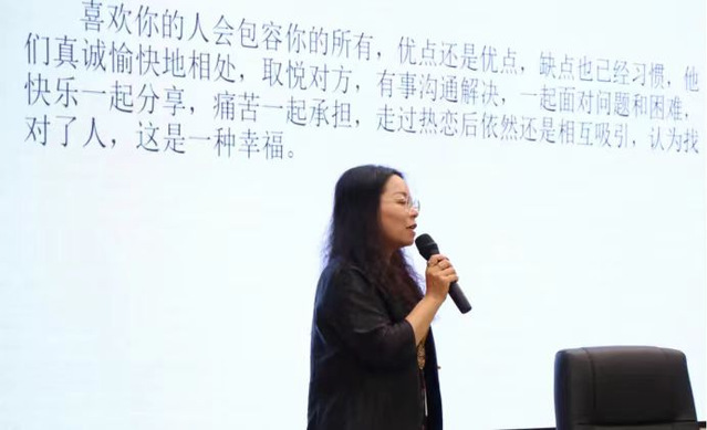 讲座的最后阶段,她强调了正确的爱情观应该是“相互吸引、彼此互助、共同发展”。