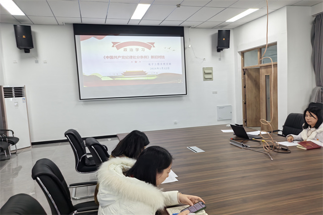 为牢固树立党员干部纪律意识,进一步深化纪律建设,以铁的纪律护航星空体育·(中国)官方网站高质量发展,2024年1月12日,电子工程系党支部组织专题学习2024年1月1日起实施的《中国共产党纪律处分条例》。本次学习由系党支部副书记陈雪主持,系部全体人员参加。