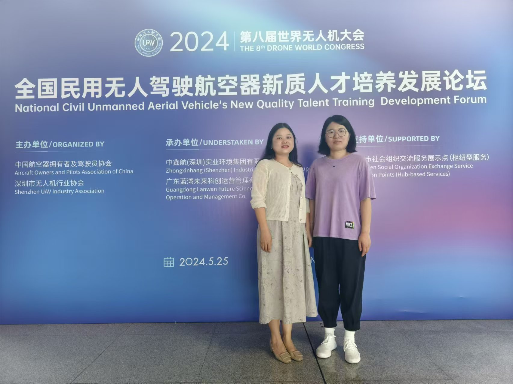2024年5月25日至26日,电子工程系副主任丁向琴、无人机应用技术专业负责人司翠平赴深圳参加备受瞩目的2024年世界无人机大会。此次大会汇聚了全球无人机领域的顶尖专家、学者和行业领袖,共同探讨无人机技术的最新发展及未来趋势。其中,全国民用无人机驾驶航空器新质人才培养发展论坛成为了本次大会的亮点之一。来自全国各地的教师代表、企业代表齐聚一堂,共同聚焦无人机新质人才的培养策略,旨在为无人机教育的未来发展注入新的活力。丁向琴和司翠平作为电子工程系的代表,积极参与了论坛的各项议程,与业内专家深入交流,共同探讨无人机教育的新方向和新挑战。