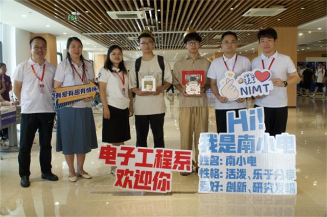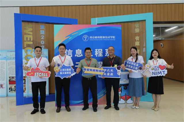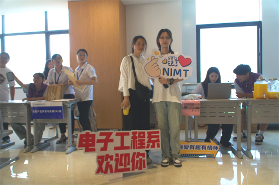 迎新现场,热闹非凡。独具特色的展板如知识的画卷,展现着电子工程系的风采与魅力;温馨的迎新条幅似温暖的怀抱,传递着对新同学的热烈欢迎与美好祝福。学生们纷纷在“我爱机电”的打卡点前露出快乐的笑脸。